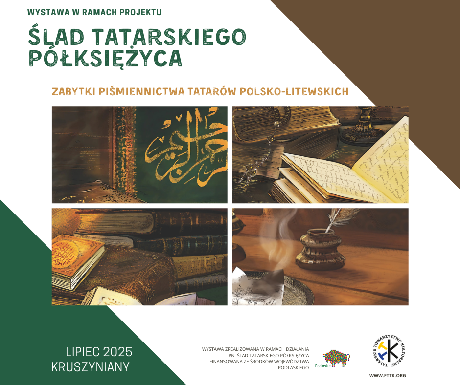 Ślad tatarskiego półksiężyca - to zadanie publiczne realizowane przez naszą Fundację FTTK, które w swojej palecie działań ma m.in. wystawę o tematyce Zabytki piśmiennictwa Tatarów polsko-litewskich. Już niedługo w przestrzeni naszych klimatycznych Kruszynian wystawa ta się pojawi, o czym niezwłocznie Was poinformujemy